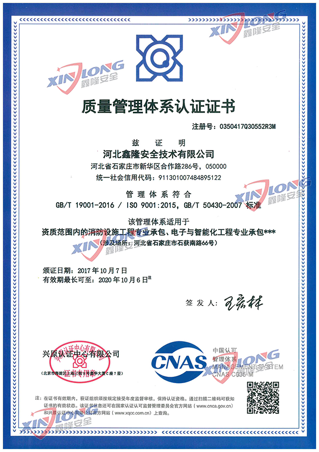 质量管理体系认证证书